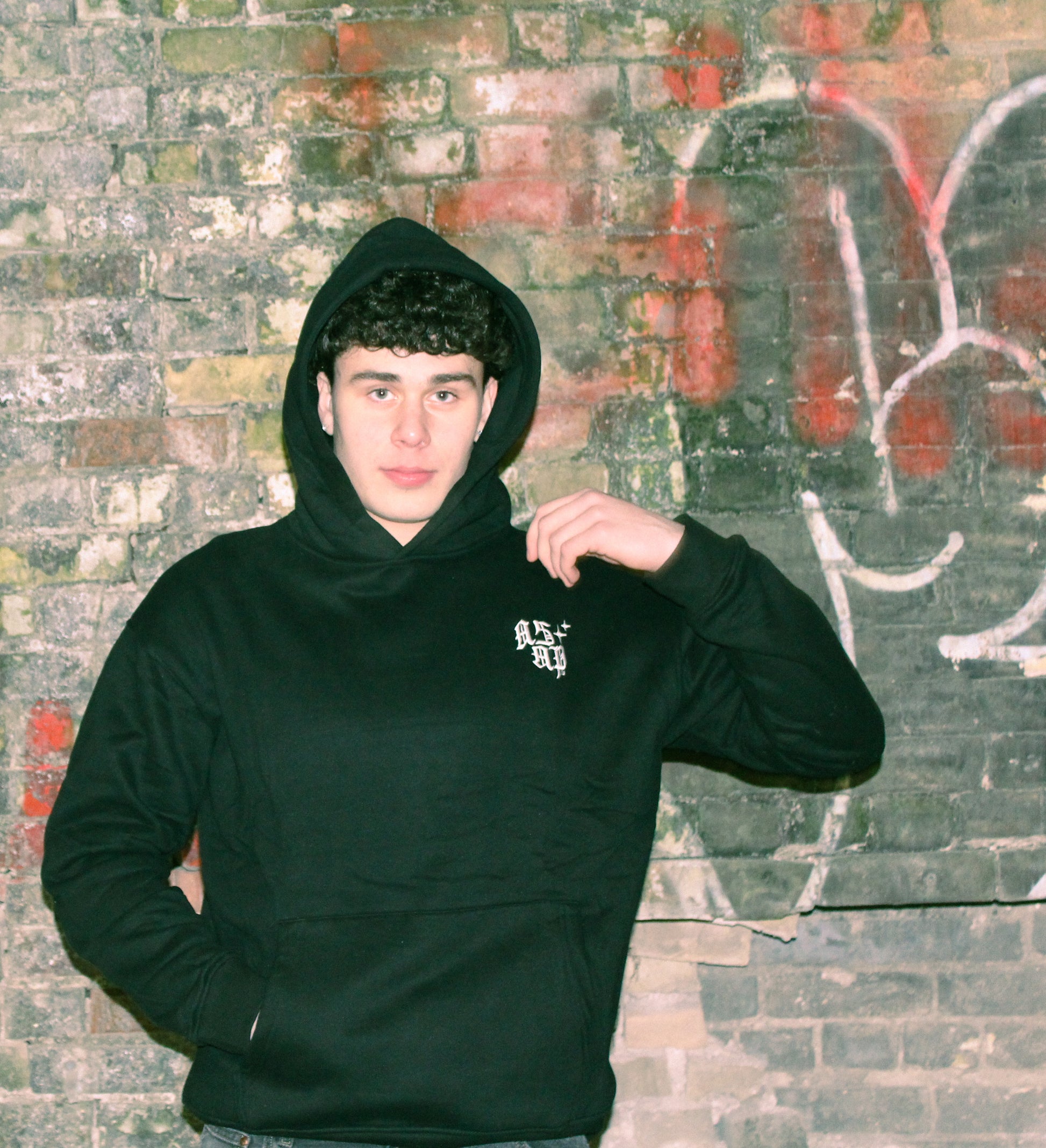 Black hooded pullover made with 100% cotton and embroidered ASAP logo on left chest.